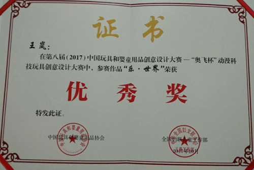 近日,在由国家工业和信息化部消费品工业司作为指导单位,中国玩具和婴童用品协会、全国妇联儿童工作部作为共同主办单位,奥飞娱乐股份有限公司作为协办单位,举办的“奥飞杯”动漫衍生玩具——第八届中国玩具和婴童用品创意设计大赛中传来喜讯,我院产品设计系11401班王岚同学凭借其在《超级飞侠》国产系列儿童片中汲取灵感所设计的作品“乐·世界”获得该项比赛的优秀奖,同时在产品设计系全体老师的悉心组织下,我校获得优秀组织院校奖,闫俊老师获得该项赛事的优秀指导教师称号。