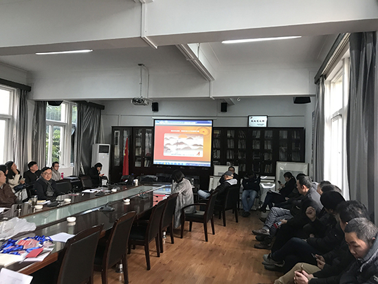 在南湖校区艺术楼二楼会议室组织全院教职工政治理论学习,会议由院党委书记陈良栋主持。