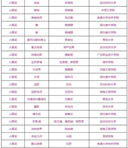 由武汉纺织大学及山东工艺美术学院、烟台市福山区人民政府、烟台明远家用纺织品有限公司、山东省省委民营企业高质量发展烟台服务二队共同承办的国际性赛事——“明远杯·国际家居纺织品创意设计大赛”大赛阶段圆满结束,下一步大赛即将进入“工作坊”阶段,现将大赛阶段的获奖名单公布如下: