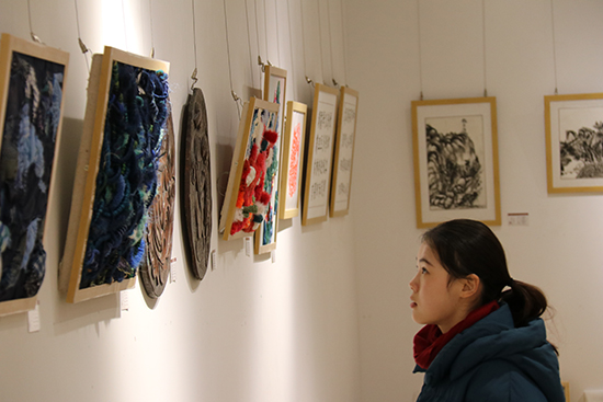 一位同学在观展后说,这是我第三年参观“艺术思政”的展览,之前两年都作为旁观者,而此次作为设计的参与者,进入到展览。在各式样作品中,让我对艺术设计又有了新的认识,设计是有生命的,是不局限于一纸一笔的,而非遗在这次展览中也被赋予了新生命,将传统打破再生再现,以一个全新面貌的出现我们眼前,作品的整体效果非常具有视觉冲击力,形式比以往更具有探索性,主题也更具时代气息,在这里看得出,创作者们用创新的“语言”,创造出对生活的心灵体验,阐释了对美好生活的感知与感悟。另一位同学说,我觉得这些手工编织的包特别有意思,他们取材于生活,使用天然纤维材料、进行刺绣、编织、印染,让这些看起来无用的废料,重新焕发生机和魅力。