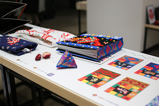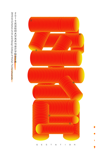 在展览中胡蝶与张国荣同学的书籍作品《贝锦卡》颇受欢迎。“贝锦卡”在土家语中意为土生土长的土家人,这本书以土家族的非物质文化遗产西兰卡普(土家织锦)作为主题,提取了土家织锦中的纹样,对这些纹样进行改造与重塑,大量运用在书籍内页与封面封底等设计中。这本书的故事是改编自土家族传说“西兰姑娘”,内涵丰富,意蕴深远。用现代趣味性乐高的形式表现民族非物质文化遗产,各美其美,美美与共。让当代年轻人能够了解、喜爱、弘扬中华博大精深、源远流长的传统文化。沈钦来同学的作品《孕育》,结合中国书法及水墨画的韵味,“孕”和“育”中的共同笔触,其走向形似孕妇的侧轮廓,借枯木意象笔划,表现一种文化的不朽精神,以此作品来表达中国传统文化进行传承的别样形式,现代文明多由优秀的传统文化孕育而来。