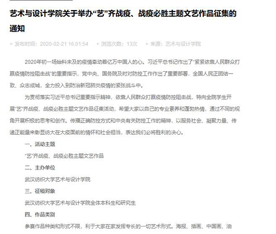 全体师生主动出击,全员战“疫”,为打赢疫情防控攻坚战献“艺”力。