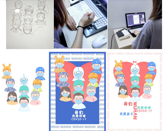 面对这次突如其来的疫情,学院认为这是一次最好的通过专业思考介入社会的实践课堂。随后学院依托专业特色,在线上授课过程中,引导学生通过不同的视角开展积极的思考和创作。传播正确防控方式和中央有关防控工作的精神,以服务社会、凝聚力量、传递正能量。面向学生发起了“艺”齐战疫、战疫必胜主题文艺作品征集活动,目前发布的“封城第38天”;“2020的打开模式可以退订吗?”;“春雨知暖意,抗疫有信心!”三期纺大视传用海报荟聚成光和“我们在黄鹤楼,等你!”的海报连载推文,受到了楚天都市报等多家媒体的宣传和推广。