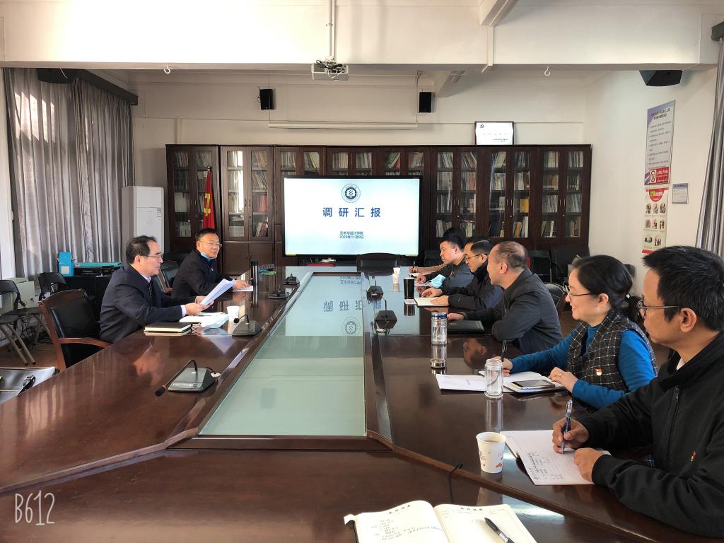 调研,考察了学院物理空间和办学条件,听取了学院工作汇报,并对下一阶段的重点工作作出指示。学校办主任杜新年陪同调研,调研会由学院党委书记陈良栋主持,学院领导班子成员参加了会议。