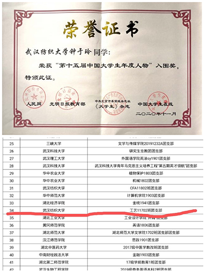 党旗引航效果显著,育人成果层出不穷。实施“理论加实践”综合考察方案,把好党员发展第一关,进一步完善基层组织机构,根据实践工作需要,设置蓝灯志愿团党小组和浦江艺术实习基地党小组。在全体党员中实施对标模范示范岗活动,涌现出1名中国大学生年度人物、1名全国大学生自强之星、1名湖北省“崇义友善”好青年、1名湖北省优秀团员、1名全校优秀党员、1名感动纺大人物,工艺11702班获得湖北省百生讲坛活力团支部银牌荣誉称号、“蓝灯志愿服务团”获创青春银奖、志愿服务大赛银奖,“艺爱星星”被评为省级社会实践优秀团队、获批校级党建项目1项。