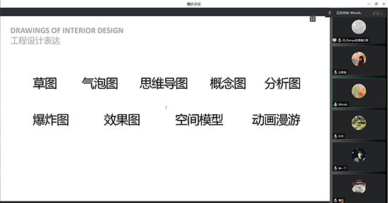 副院长曹凯主持,环境设计系系主任邱杰老师出席的“境语·辅助”——CAD理论与实践讲座在腾讯会议顺利举办,来自武汉学院环境设计系的王欢老师和上海华东设计院的吕振宇设计师两位老师,为同学们带来了环境设计专业方面的设计经验。
