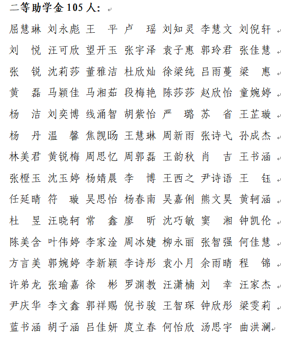 按照学校《关于开展2025年武汉纺织大学国家励志奖学金、国家助学金评选工作的通知》精神,根据《武汉纺织大学本科生国家助学金评选管理办法(试行)》武纺大学〔2023〕5号文件等规定,经政策宣讲、本人申请、班级评议、学院审核,拟推荐高文庆等209人获得2025-2026学年年国家助学金,现予公示。