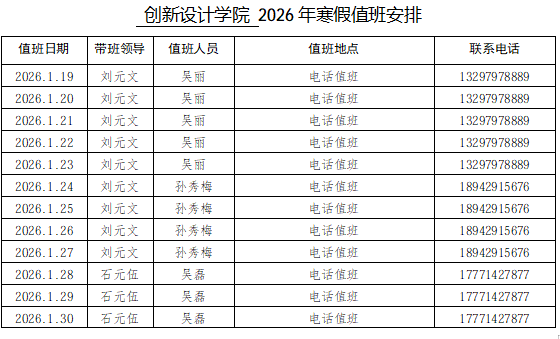创新设计学院2026年寒假值班安排