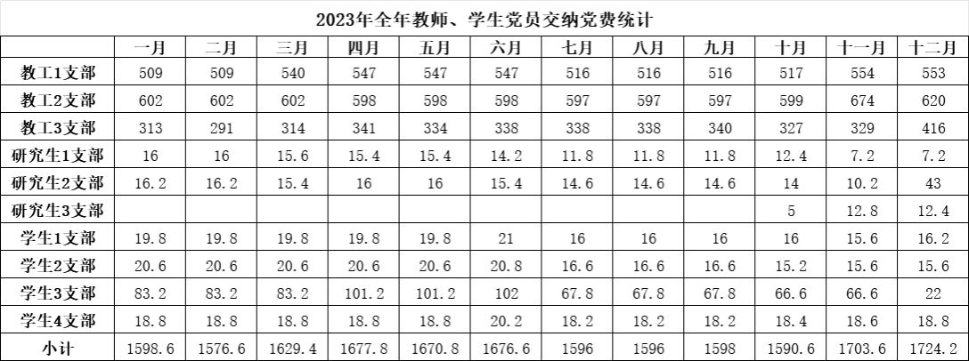 下注足球 2023年全年教师、学生党员交纳党费统计