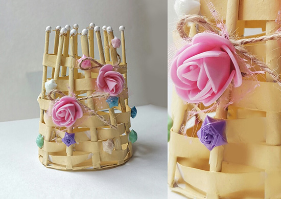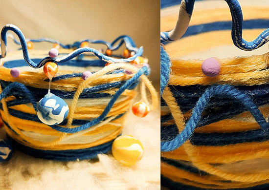视传11701班的柯子怡同学还利用面粉主动学习并掌握了如何熬制浆糊及上色等工艺,将其运用在作品创作中。她表示,这次的劳动教育课是自己最难忘、最与众不同的一次。在学习探索知识的过程中进行,使她深刻体会到劳动是一种“深度的、真实的自主学习”。来自视传11702班易旻屿也表示,在这次编织的劳动教育课程中,使她对工匠精神有了更加深入的解读,懂得劳动的伟大意义,了解了劳动的价值。进一步体验到劳动的艰辛,今后会更加珍惜别人的劳动成果!