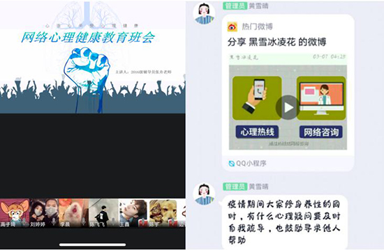 积极落实学校工作部署,通过网络面向全体学生召开心理健康教育主题班会。