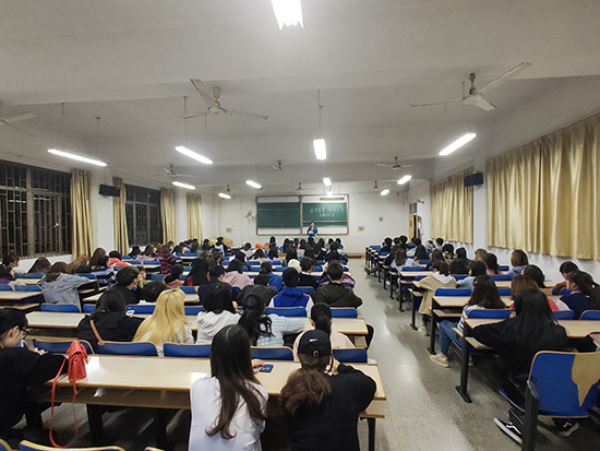 在综合楼开展了“奋斗青春 诚信人生”主题讲座,本次主题讲座由新生辅导员吴熙老师主讲,2019级全体新生参加了本次讲座。