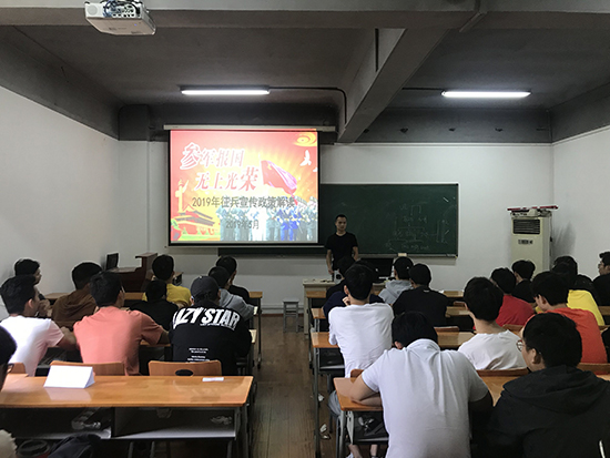 接着2016级辅导员张舟老师为同学们作了“参军报国 无上光荣”为主题的政策宣讲。他讲到,应征入伍是青年应尽的义务,也是无上的光荣,尤其是对于在校大学生,国家提供了许多的优惠政策。无论是保留入学资格、保留学籍、远程学习,或者学费代偿、家庭补贴,还是就业、创业或升学,国家都对为国效力的同学们解决了后顾之忧,真正实现了奉献国家与个人发展的统一。
