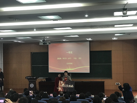 大赛于去年12月份启动,在历时4个月的时间共征集到来自全校十个学院近300幅设计作品。经过专家评审,评出一等奖1名,二等奖3名,三等奖5名,优秀奖10名。大赛的初衷是为了激发纺大在校大学生的创新能力,培养造就“大众创业、万众创新”生力军,此项大赛作为今后学校的常规赛事,为学生提供锻炼和实践的平台。