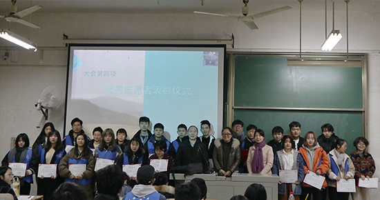 举办了蓝灯志愿团2018年度工作工作总结与优秀志愿者表彰大会,学院党委书记陈良栋、副书记张鹏以及全体蓝灯团队102名成员参加了此次大会。大会由蓝灯志愿团指导老师漆晚霞主持。