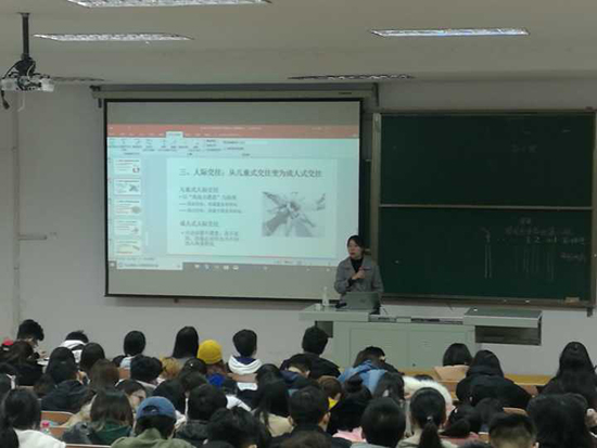 漆老师以美国心理学家埃里克森提出的心理社会性发展理论,解释人是如何通过完成适应环境和社会任务得到发展的为切入点,她说,根据这个理论,人的一生发展可以分为八个阶段,每个阶段都会出现一个或一些特定的有待解决的发展危机,只有完成好每个阶段的危机,才能顺利过渡到下一阶段。大学生处于成年早起,正逐渐脱离原生家庭,走向社会,面临亲密对孤独的发展危机,这个阶段面临的适应与发展的任务,如情感、学业、人际关系等等,都是全新的挑战。紧接着,漆老师重点跟同学们讲解了如何去从容面对这些发展危机,如日常生活从依赖变为独立,学习由被动变为主动,人际交往也要由儿童式交往变成成人式交往、自我认知由角色混乱变成自我统合等等,教会同学们大学面临新的挑战的解决方法,她强调,希望同学们学会多一些体验、让一点占用,也就是尽心尽力尽一切可能了,在努力的过程中有一种参与感与充实感,这是人生的意义和价值所在。