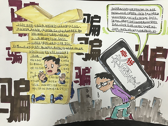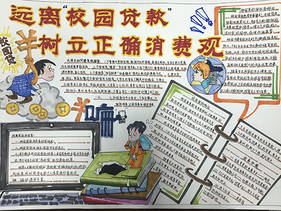 据悉,为了能向学生普及“校园贷”知识以及危害,帮助学生甄别各类“校园贷”、“培训贷”,强化学生依法维护自身权益、甄别各种非法借贷的意识和能力,确保校园不良借贷风险防范知识入心入脑,学院组织了学生创作以防范非法校园贷为主题的小海报。