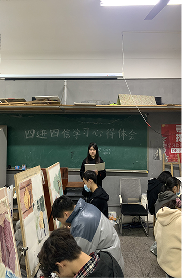 教学楼东北303教室开展以“四进四信心得体会”为主题的班会活动。