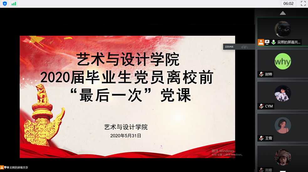 组织全体毕业生党员通过腾讯会议举行毕业前最后一堂党课,此次党课由学院本科生第一、第二党支部书记吴熙老师主讲,2020届全体毕业生党员参与了此次党课学习。