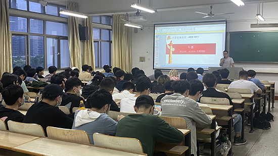 于2021年5月28日开展“中国梦 强军梦——国防教育与征兵宣讲”活动。本次宣讲会由杨绍浩老师主讲,2018、2019、2020级男生全部参加会议。