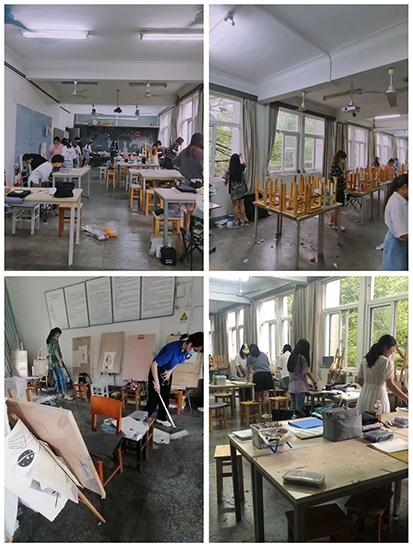 全体党员班干和入党积极分子在辅导员的组织下,对学院的专业教室进行卫生打扫。同学们将画板桌子进行清理并摆放整齐,对个人的染料盒画笔纸张进行收纳,将地上的废纸和垃圾丢进垃圾桶统一处理,最后把地面打扫干净。活动过程中,同学们干劲十足,不怕脏,不喊累,不仅陶冶了集体情操、增强了集体观念。与此同时,辅导员还鼓励党员班干和入党积极分子在自身实际条件允许的情况下,积极投身社区(街道)以及社会组织、社会团体等组织开展的各项志愿服务活动,通过力所能及的社会实践,将所学知识和技能有效运用于生活生产实际,促进知行合一,实现体脑并用,锻炼和增强本领能力。