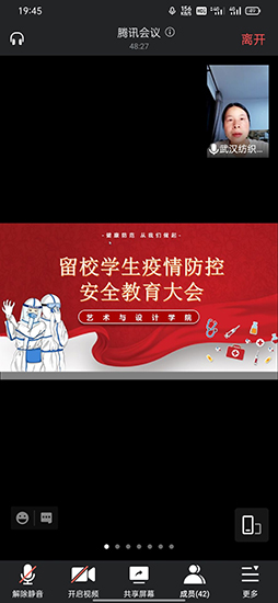 2021年疫情防控暨安全教育工作专题会”,会上,漆老师首先对所有留校同学在前期克服炎热天气、学业压力,专心学习的行为给与充分肯定,接着,她给大家通报了目前全国疫情多点爆发的艰难形势与后期面临的严峻考验,传达了湖北省、武汉市、学校关于疫情防控的相关会议、文件精神,对于疫情防控状态下的学生教育管理工作做了明确要求,她强调,所有留校同学务必坚持校外同学一样,坚持每天报平安,未经老师允许坚决不出校门,如果前期有外出行为,一定要向老师如实汇报自己的行程行踪,另外,留校同学在校园内部依然要加强疫情防控的科学做法,比如尽量减少多人聚集、戴口罩、勤洗手、寝室多通风,科学作息、健康饮食等;第三,所有留校学生务必准守学校宿舍管理规定,不使用违规电器,不乱搭 电线,提高人身财产安全意识;第四,她鼓励同学们,利用暑期的时间认真备考,查漏补缺,为自己的青春留下浓重的一笔。最后,漆老 师针对当前疫情困扰、学业压力,为所有留校同学进行了一个简要的 特殊时期心理健康疏导,引导同学们正确辨别与认识心理亚健康的信号与应对方法,并将心理支持途径如校内外的心理援助热线公布给大家,鼓励同学们在特殊时期学会寻求帮助。