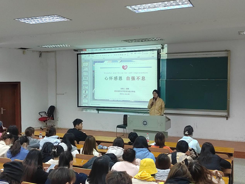 于南湖校区尚美楼T101召开了“心怀感恩、自强不息”的主题教育活动。学院2020级全体学生出席了会议,会议由2020级辅导员张瑜老师主持。