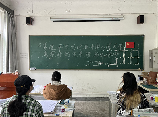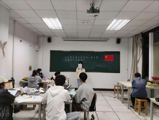青年学子们高唱国歌,并阅读《习近平总书记在中国人民大学考察时的重要讲话》,部分同学结合自身经历互相交流意见,踊跃发言。