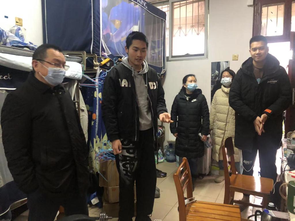 党委书记刘元文带队走访学生宿舍,党委副书记吴双陪同,全体辅导员参加走访。