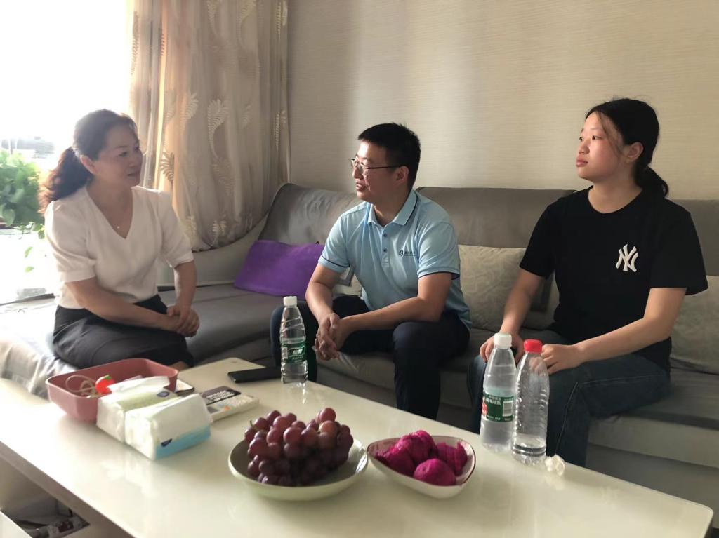 7月16日,党委副书记吴双、2020级本科生辅导员韩泽光来到大三学生小王家中。吴双向学生、家长介绍了本次家访的目的并送上慰问品。韩泽光向家长汇报了过去一个学期小王同学在校学习、生活、参与实践等情况,小王开学后即将升入大四面临求职就业,吴双、韩泽光听取了她职业生涯规划,并围绕就业渠道、招聘信息获取、简历制作、笔试、面试注意事项等方面与学生、家长进行亲切交流。最后,吴双鼓励学生在生活中要树立信心,发挥自己动手能力强、擅于创作的优势,敢于突破自我,实现自己目标。