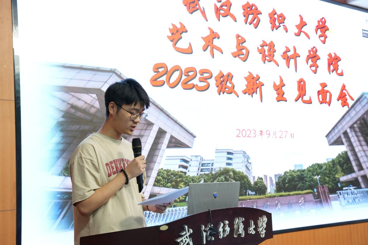 宣传片,加深了大家对于学校和学院的认识和了解,同时也对自己未来所学习的专业方向和内容有了一定概念。他寄语新生:一是拥有梦想,结合中国梦,强调拥有梦想是同学们应该认真思考的一个关键命题,引导同学们立足长远,要志存高远情系家国;立足大学,脚踏实地奋斗以成。二是学习成才,结合自身经历和实际理论,引导新生们提前拥有学习设计学专业的相关思维技巧。三是学会生活,鼓励大家加强与辅导员的沟通,鼓励学生们保护身心健康、强健体魄、营造和谐人际关系。