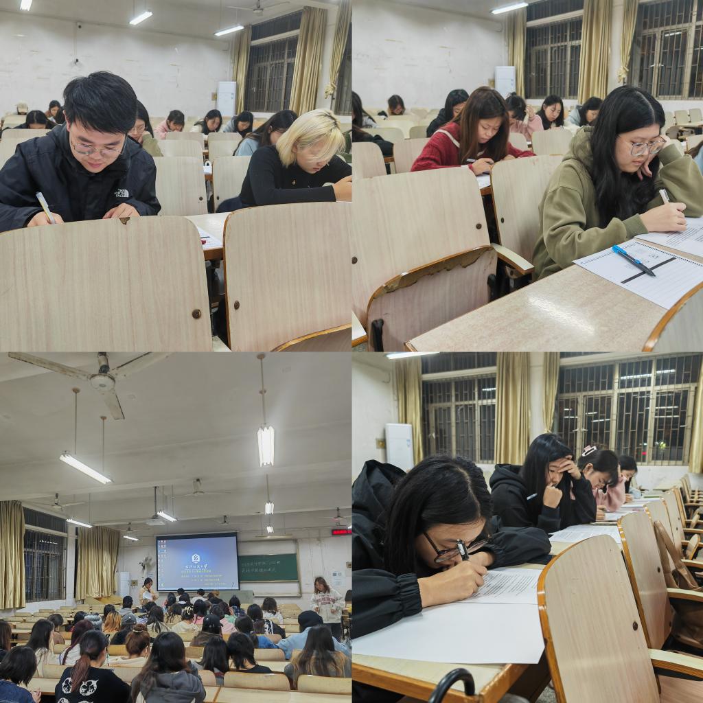此次模拟考试是按照全国大学英语四级考试题型及难度,在全国大学英语四级考试前对2022级学生进行的一次模拟演练,旨在帮助学生提高对四级考试的重视程度,熟悉考试环节,掌握考试题型,认真备考、全力以赴。随着工作人员的宣布,四级模拟考试正式开始。本次模拟严格按照正规考试流程进行,依次进行了作文、听力、阅读部分的考试,工作人员也及时按照考试时间进行提醒和收回答题卡等工作。