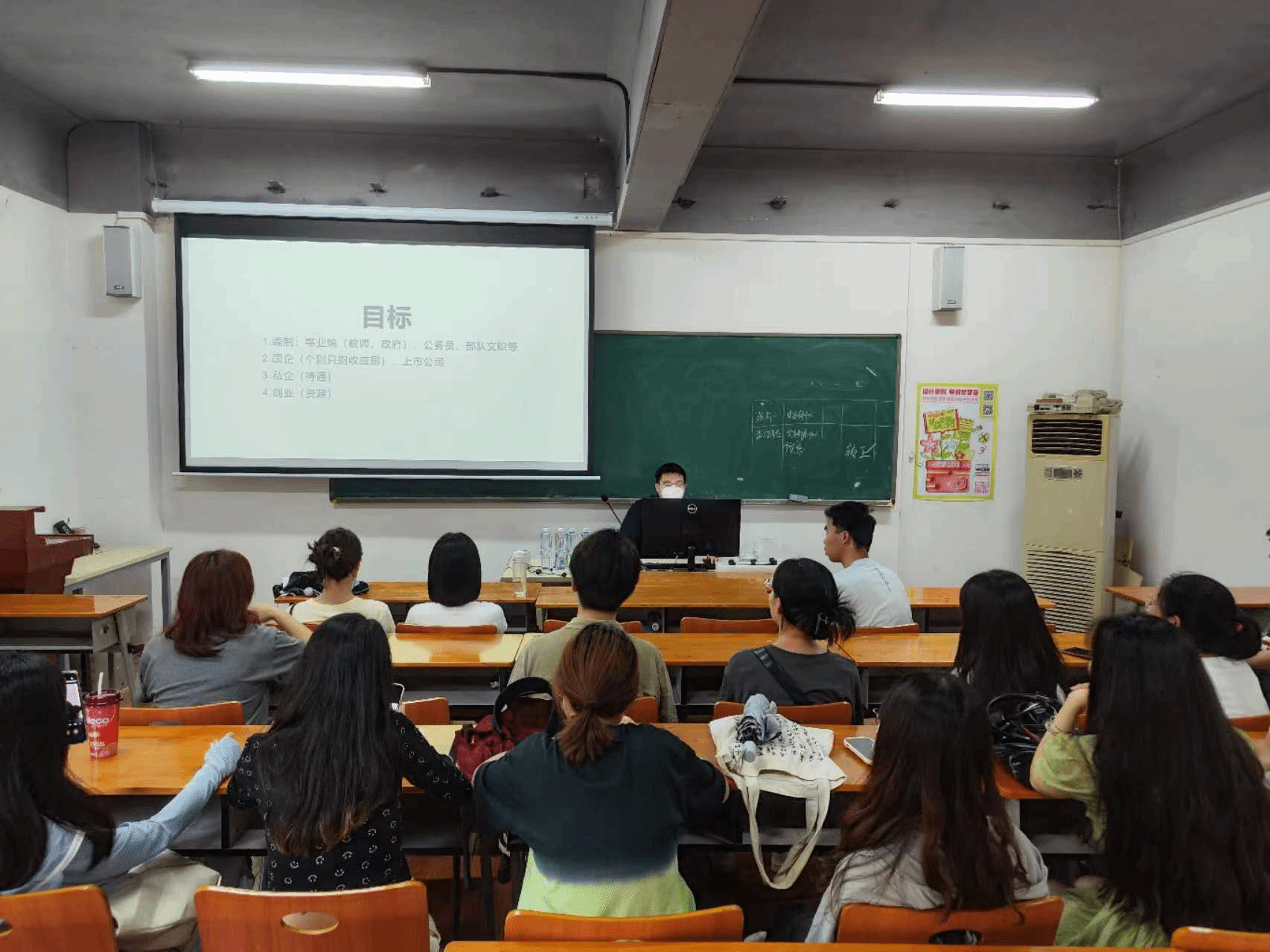 卢文政结合自身的经历,从考前获取信息、考中备考复习到最后的面试体检为大家细致地介绍了省考备考的一般流程,在演讲时透露自己也曾遭遇挫折,但更重要的是稳定心态、相信自己,并在最后祝愿各位师弟师妹们顺利上岸,一起走上为祖国奋斗之路,一起担负时代的荣光。