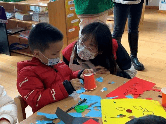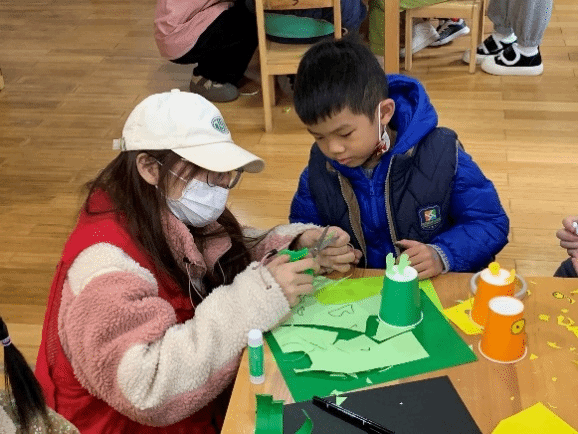 随后,小朋友们跟着老师一起进行环保DIY制作,使用一次性纸杯、瓶盖等废弃材料以绘画、拼贴、裁剪等形式制作出一件件富有创意的作品,让孩子们通过美术创作体会到平时看似不起眼的废弃物也可以循环利用,变废为宝。最后,小朋友们将自己的作品进行展示,并与志愿者们合影留念。