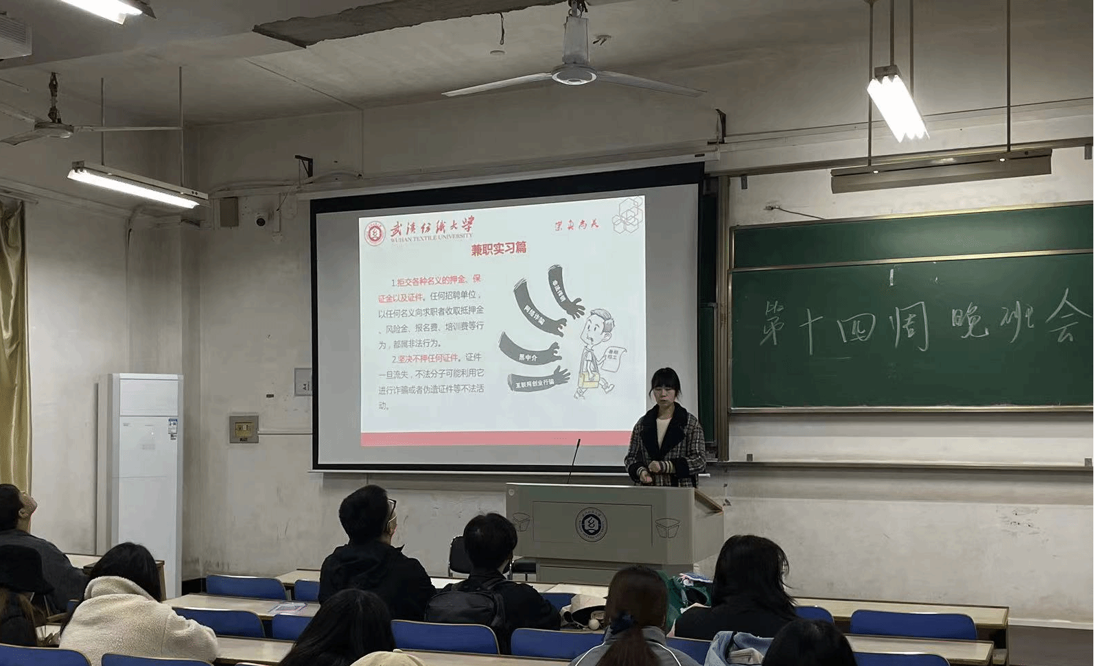 最后,她通过案例讲解、播放视频等方法,向同学们介绍了“防诈骗”的相关知识,嘱咐同学们提高警惕,吸取经验教训,努力识别各种形式的骗局,最大限度保障自己的人身财产安全。