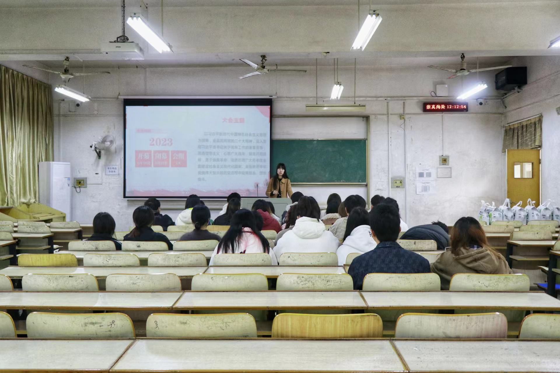 在综合楼110教室开展“挺膺担当砺青春,笃行不怠向未来”主题团课,学院团委书记陈畅主讲,全体团委学生会骨干参加讲座。