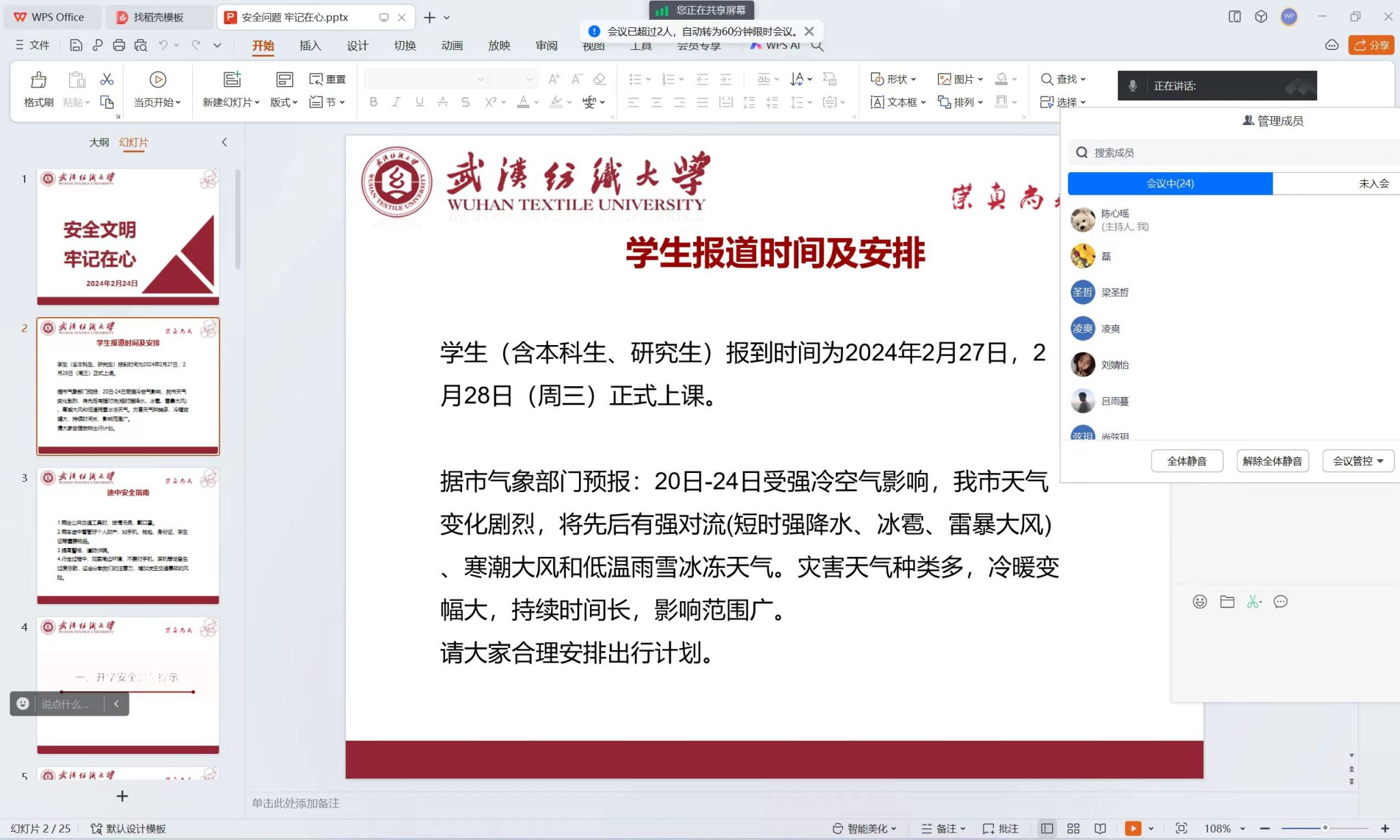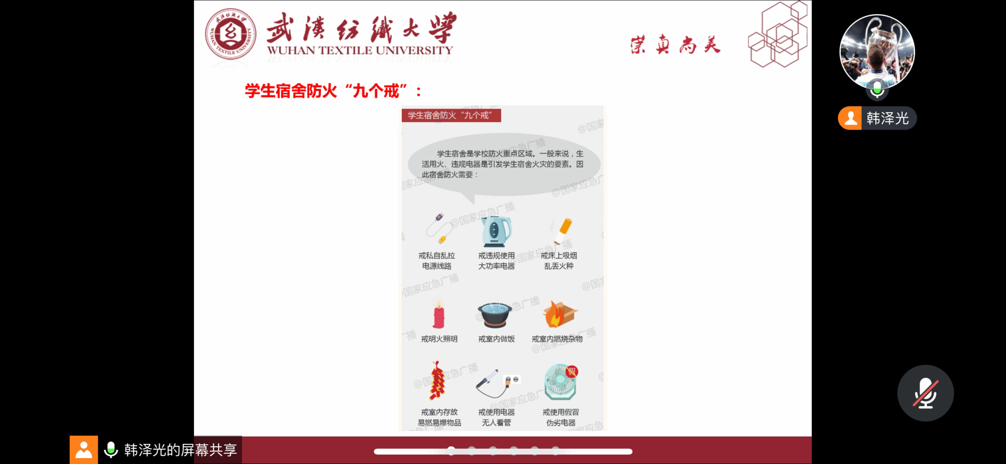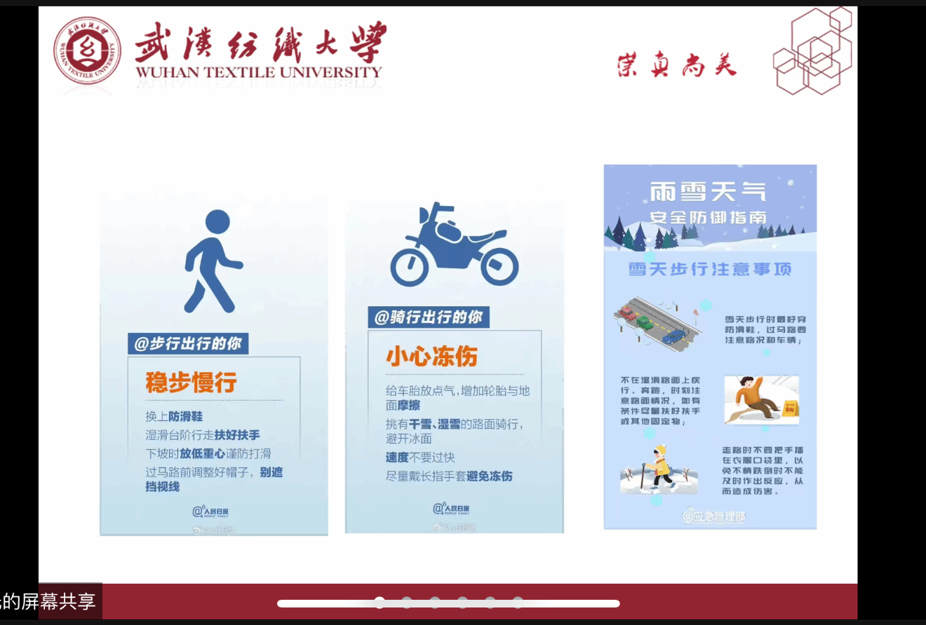 会上,各年级辅导员传达了省教育厅和学校春季开学安排,结合武汉近期天气情况进行了雨雪天气安全出行科普,提醒同学们要密切关注天气变化,合理定返校行程,返校途中带好随身物品、注意人身及财产安全。随后,各辅导员结合具体案例进行了防诈反诈、食品安全、消防安全等教育。