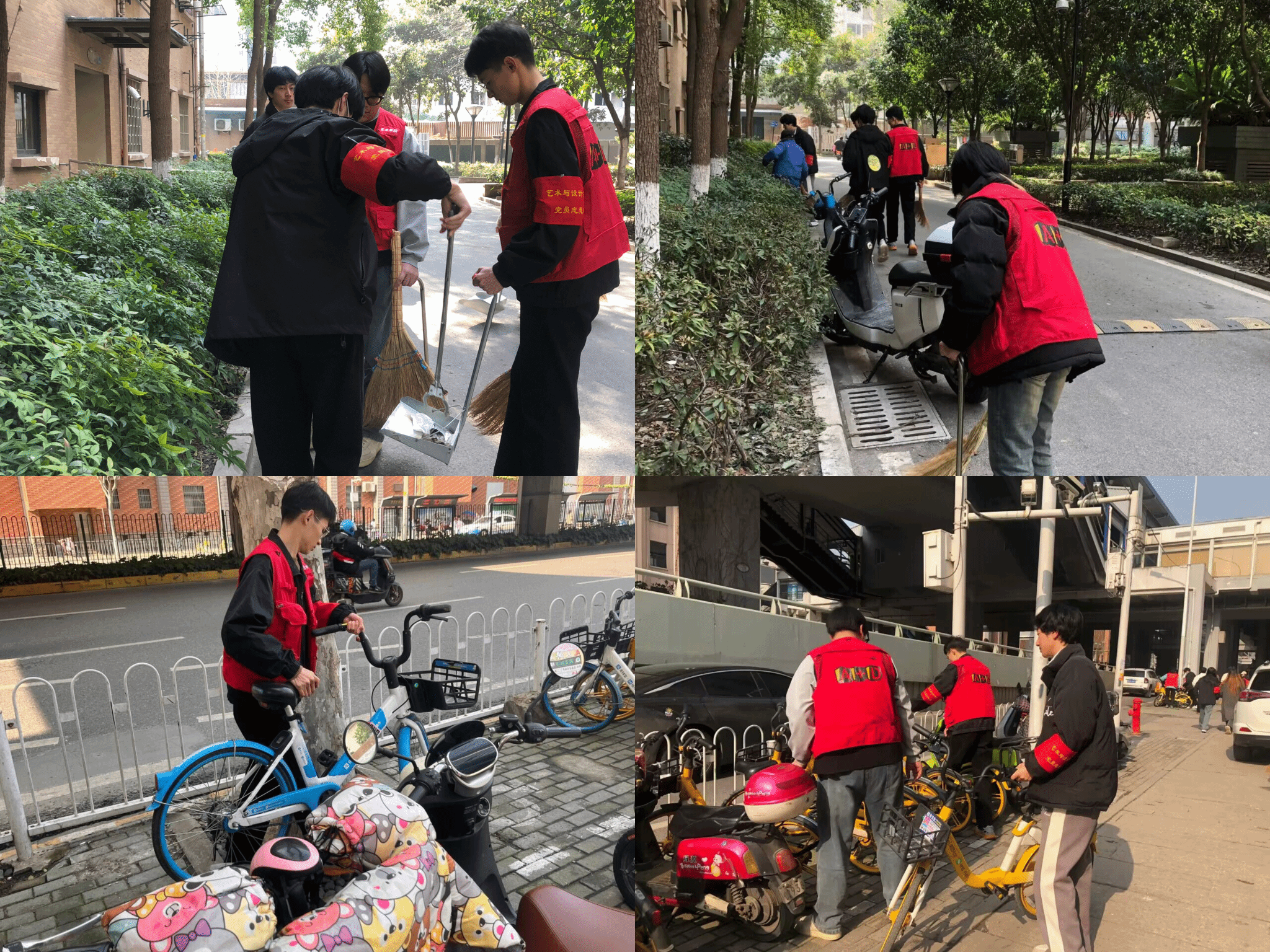 活动伊始,社区里的工作人员对志愿者们进行了悉心的指导,志愿者们拿起好撮箕、扫帚和抹布,分两组开始义务打扫活动。一组同学清理社区路边的垃圾和落叶,擦拭宣传栏橱窗,另一组同学对社区内共享单车进行整理摆放,对停放点进行清洁维护,有利于社区居民的出行及社区的美观。经过1个多小时的艰辛劳动,周边道路变得干净整洁,社区环境也焕然一新,来往的居民都对志愿们竖起大拇指,尽管天气还有点冷,同学们心里都暖洋洋的。