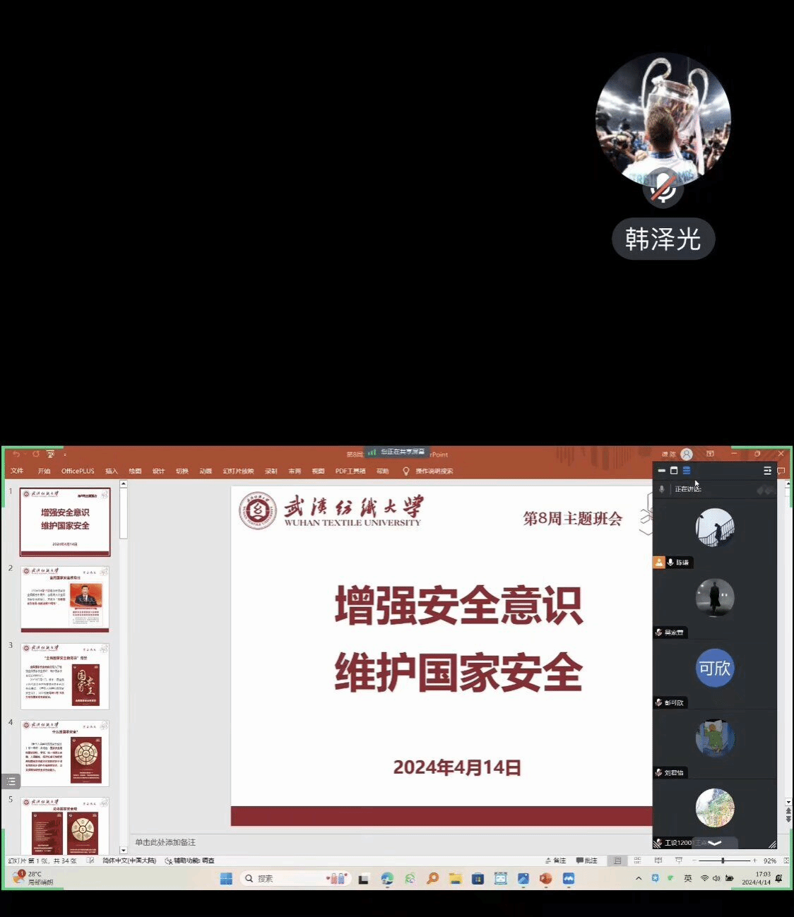 组织召开“增强安全意识 维护国家安全”主题班会,开展国家安全系列主题教育、学习国家安全主题教育典型案例,引导广大青年深入学习贯彻总体国家安全观,提升国家安全意识和素养,勇于为维护国家主权、安全、发展利益挺膺担当,班会由各年级各班班主任主持,全体在校本科生参加本次班会。