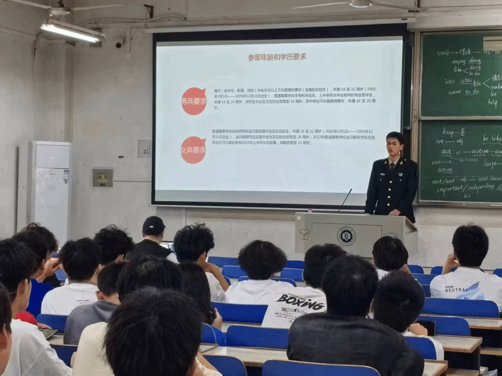 首先,各班主任结合班会主题向同学们做好大学生入伍的政策解读、申请条件和流程等,引导广大学生将个人梦想融入祖国强国梦强军梦中,勇于担当大任,报效祖国。
