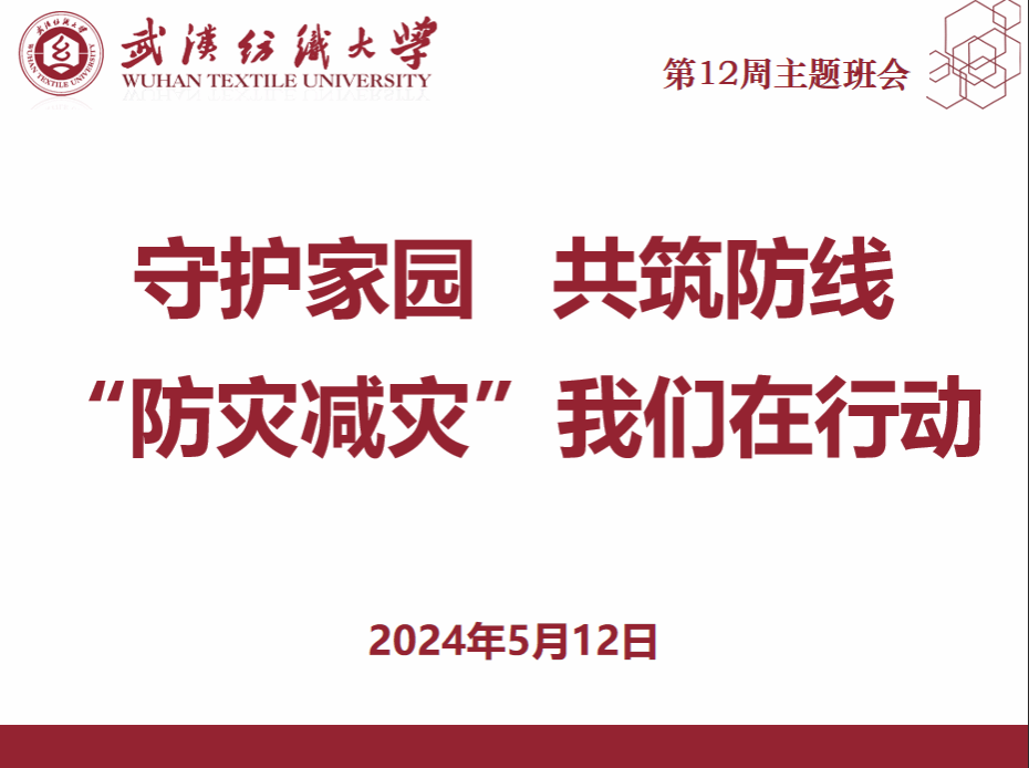 各年级各班召开“守护家园 共筑防线 防灾减灾 我们在行动”主题班会,全体在校本科生参加本次班会。