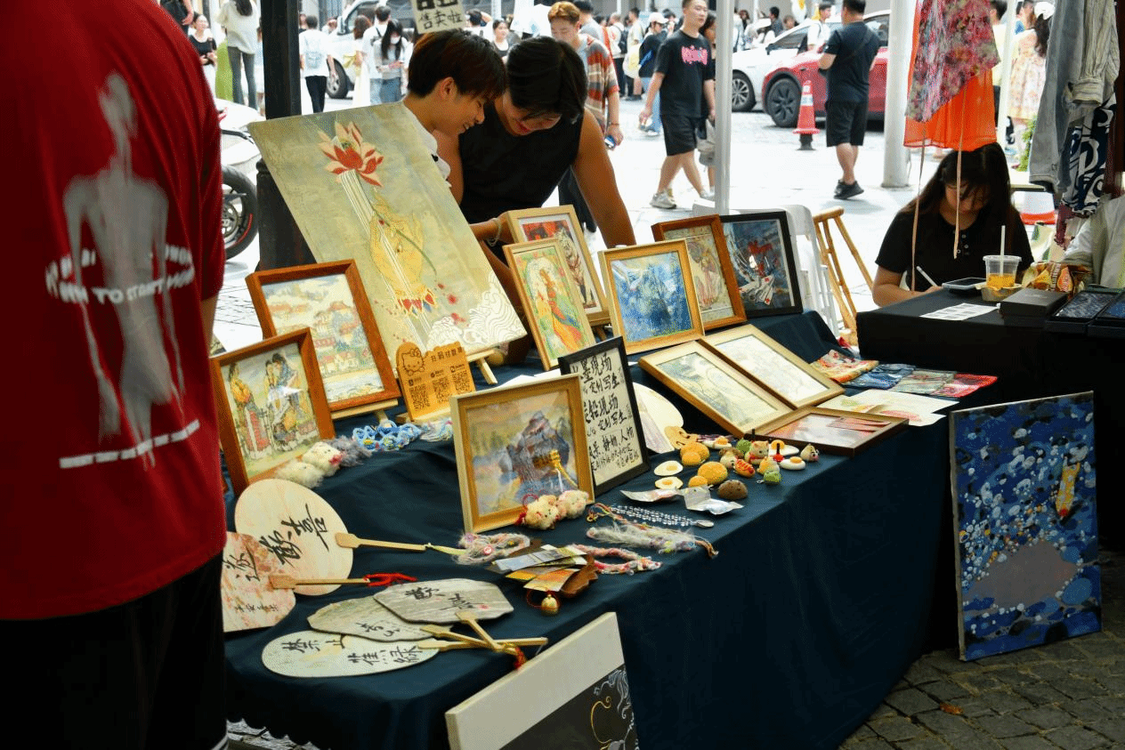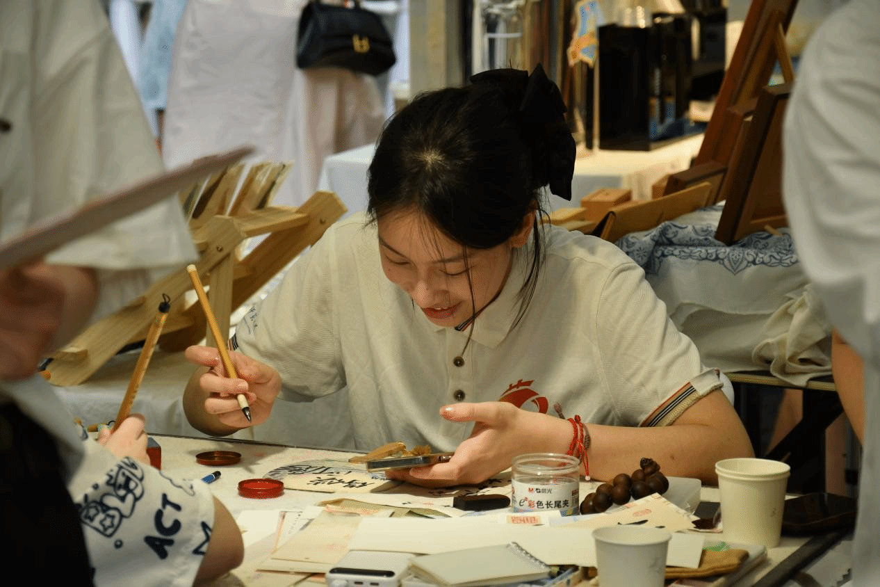 特别值得一提的是,5月18日,集市迎来了来自华中师范大学的书法爱好者姜乐璞同学在现场为游客提供定制书法作品的服务,将传统文化与现代创意完美融合,为集市增添了一抹独特的文化色彩。