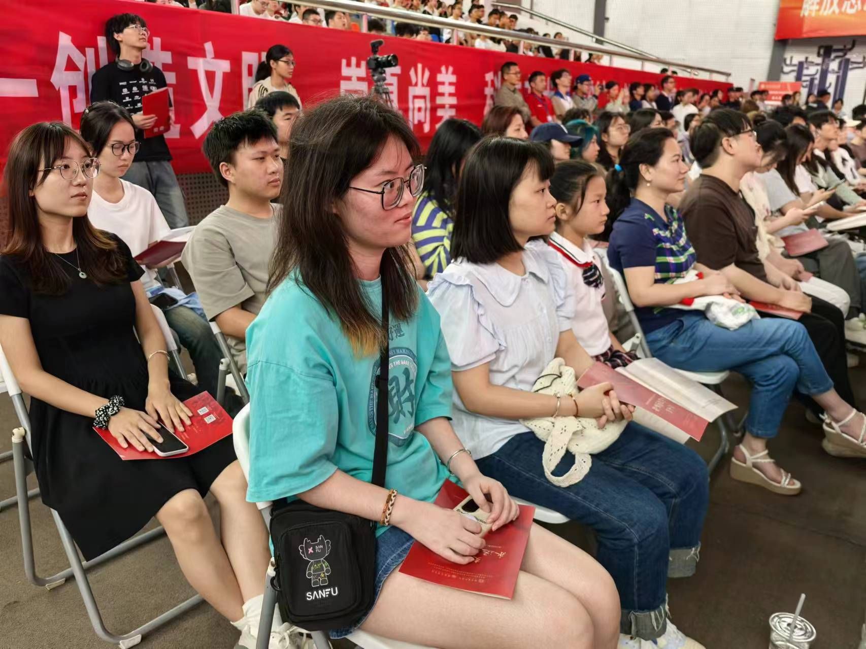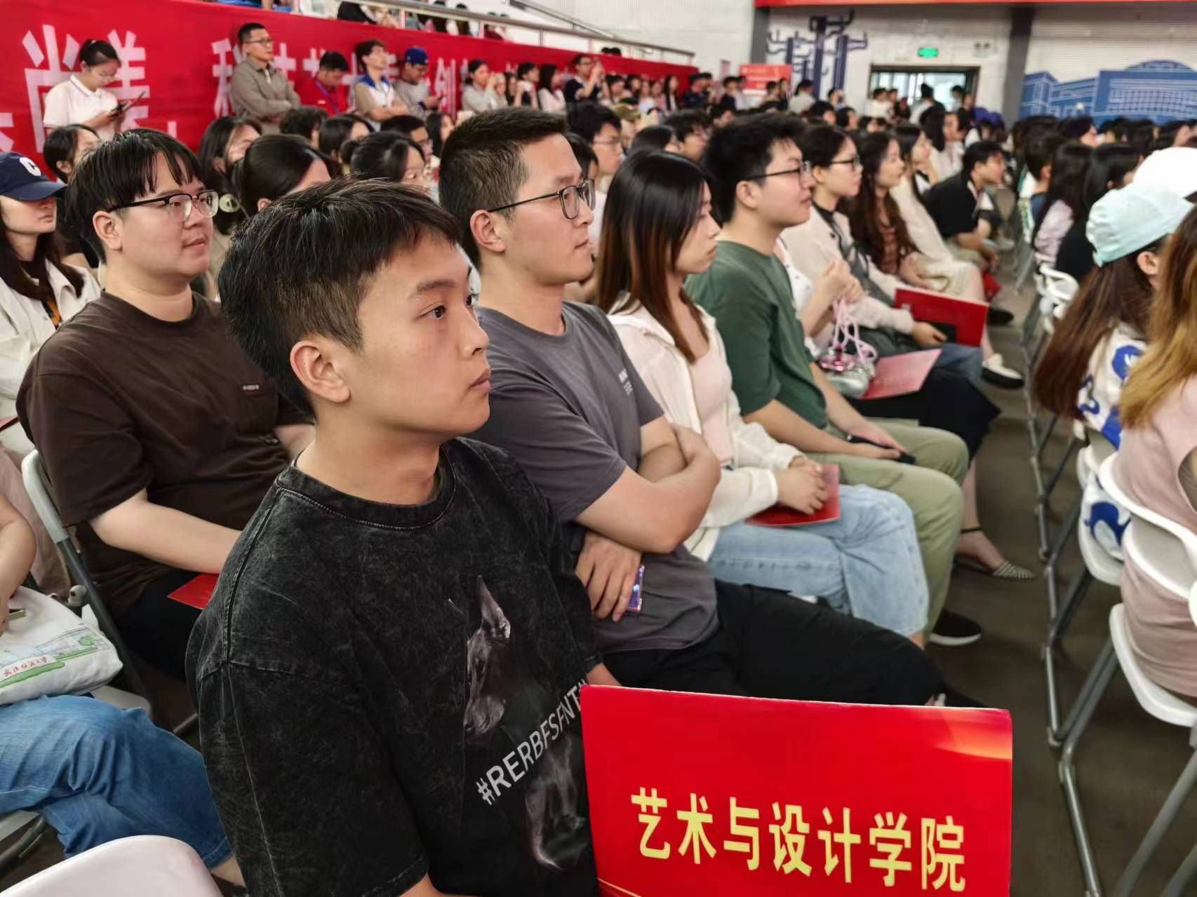 组织毕业生代表到阳光校区大学生活动中心演播厅现场聆听交响乐《永远的焦裕禄》,学院党委副书记吴双、研究生辅导员陈畅、本科生辅导员韩泽光、毕业生代表参加活动。
