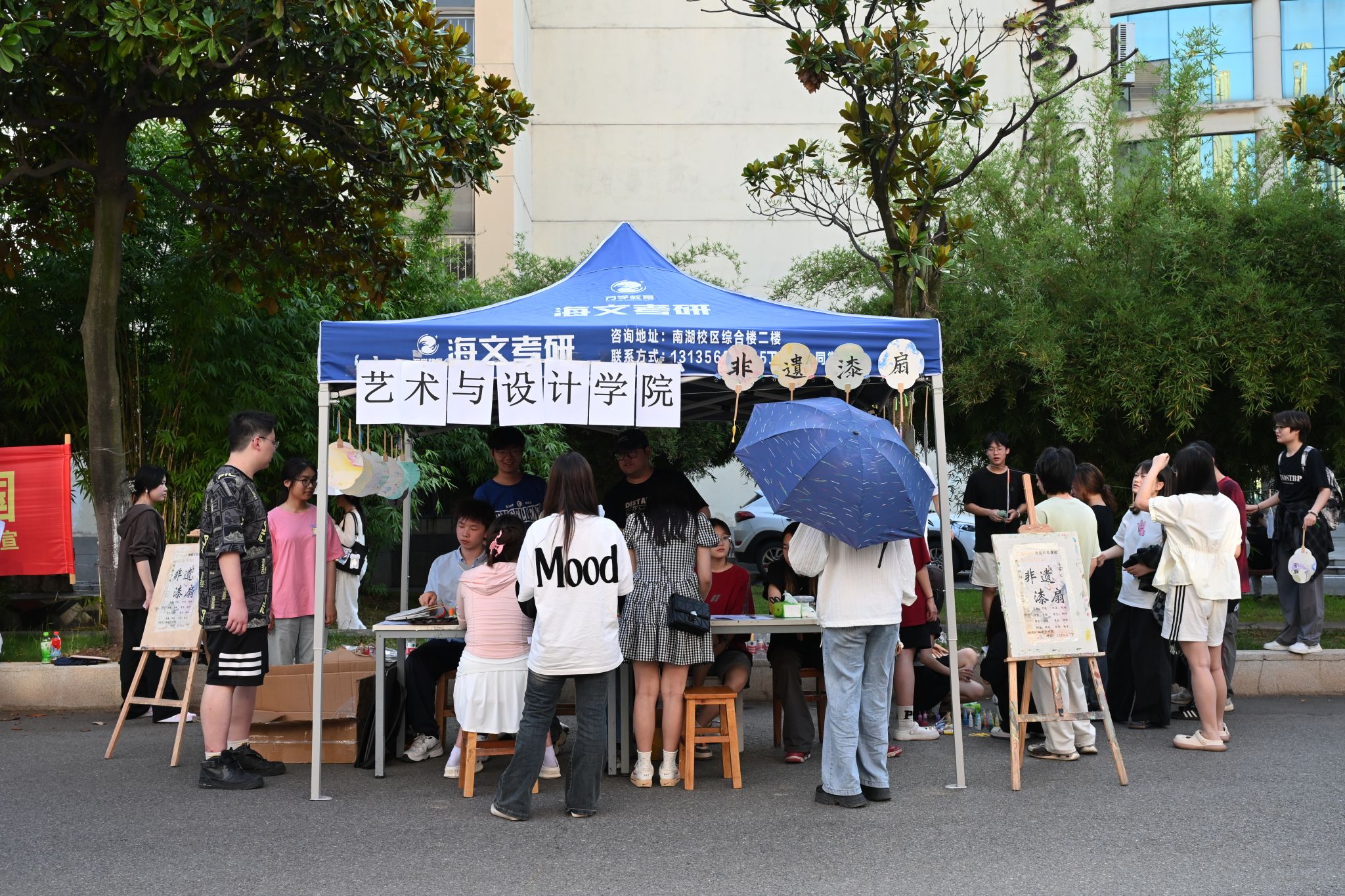于6月12日下午在南湖校区食堂门前举办了“以漆为笔,以心为画”漆扇创意创作活动,南湖校区师生广泛关注。