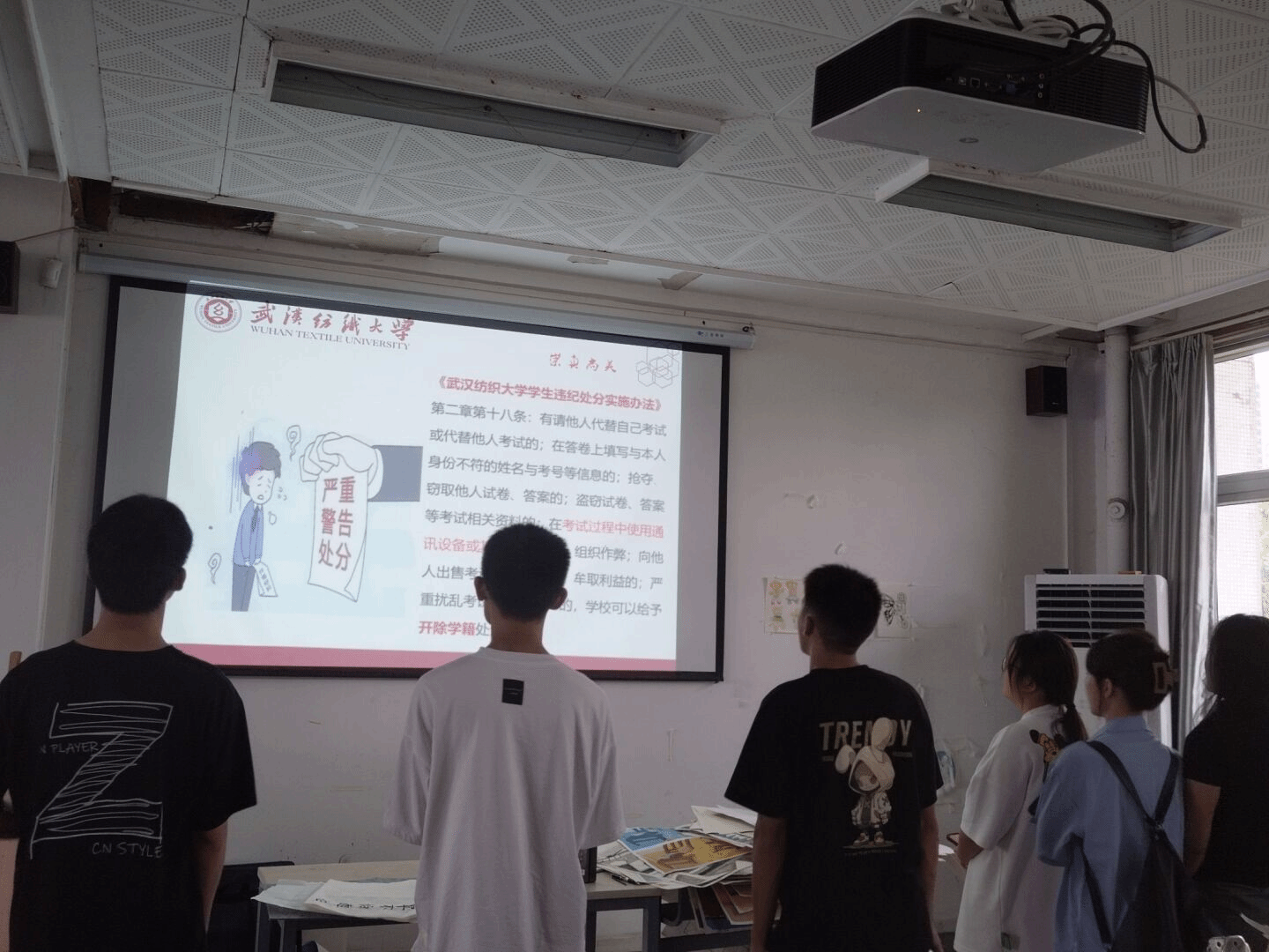 首先,各班主任结合班会主题指导同学们学习《武汉纺织大学学生考试违纪处理办法》,教育引导学生诚信应考、科学备考。