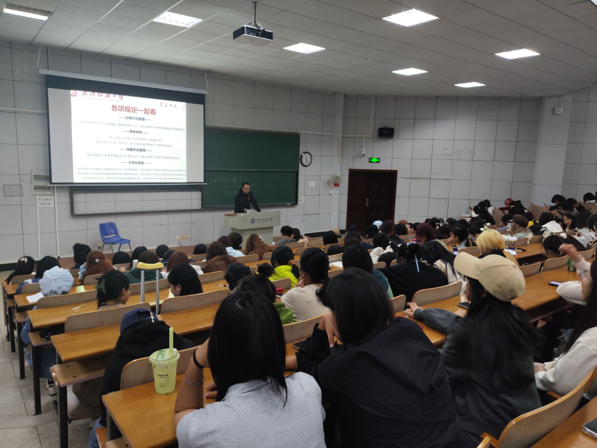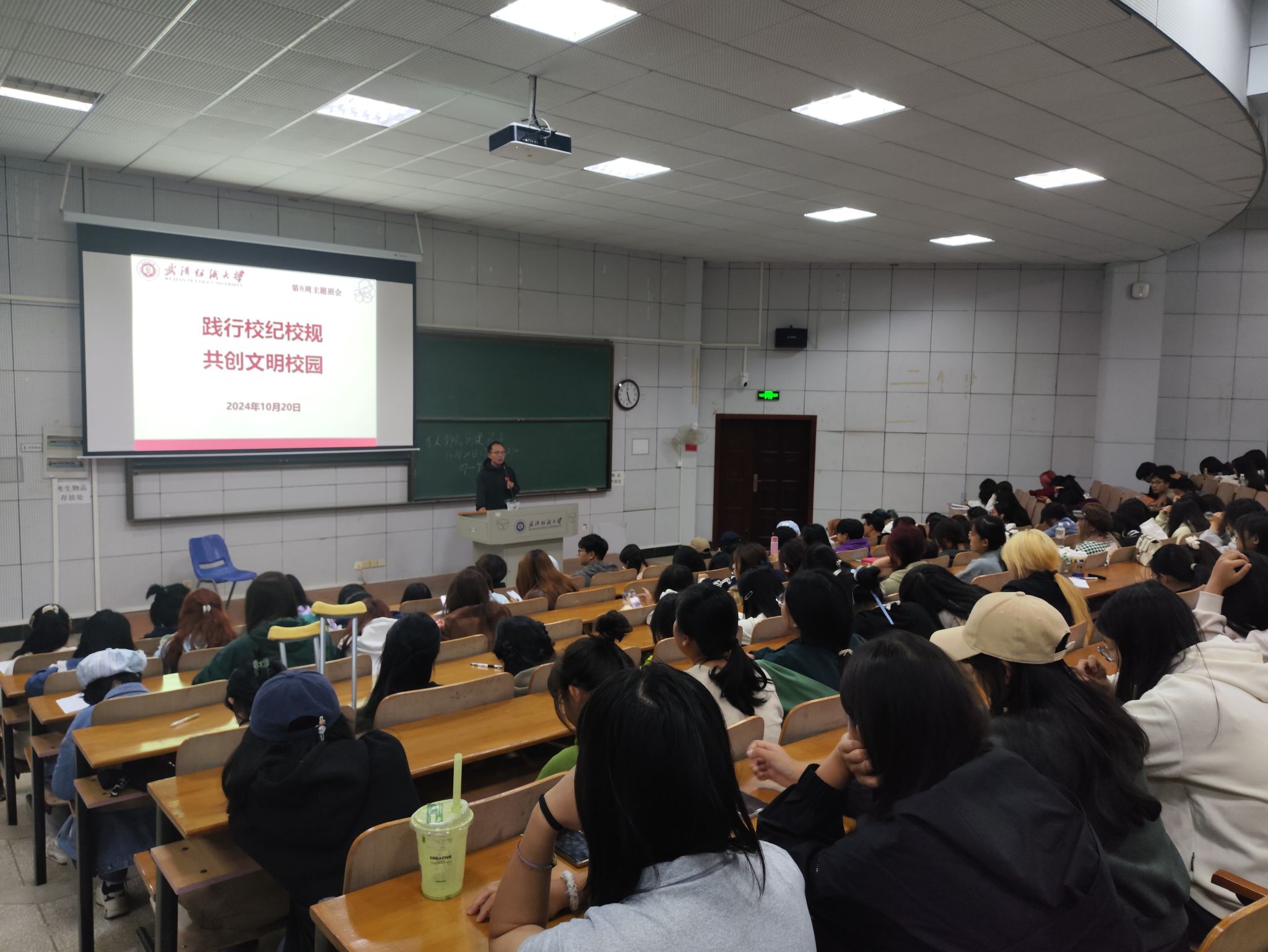 各年级各班召开“践行校纪校规 共创文明校园”主题班会,各年级辅导员、各班班主任主持班会,在校本科生参加本次会议。