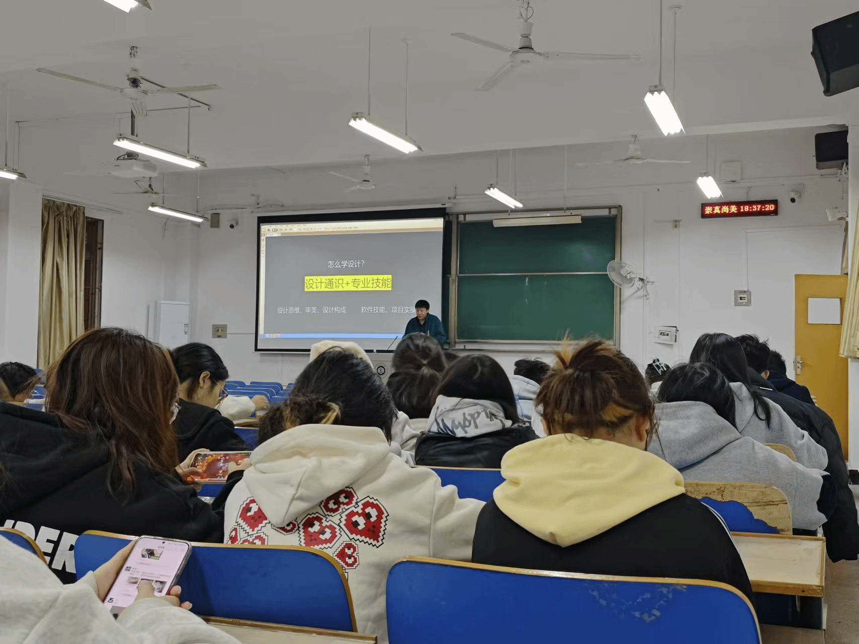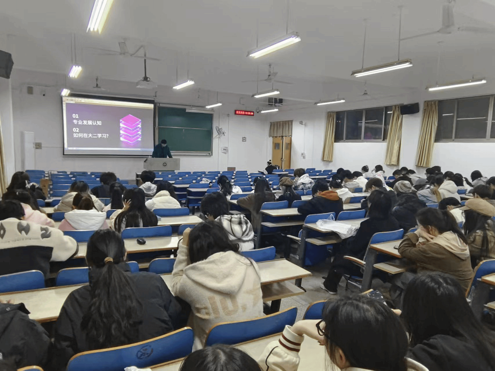 在NH05-108教室举行第二届职业生涯规划大赛院赛,学院党委副书记吴双、团委书记陈畅、全体辅导员担任评委,陈放主持活动。