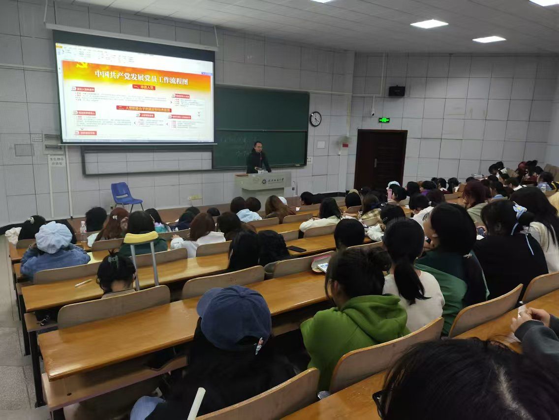 韩泽光向同学们介绍了中国共产党的光辉历程和中国共产主义青年团的发展历程,详细讲解了入团条件、团员发展流程、入党条件、入党流程和注意事项,鼓励同学们要坚定理想信念、厚植爱国主义情怀、严格要求自我、不断追求进步!
