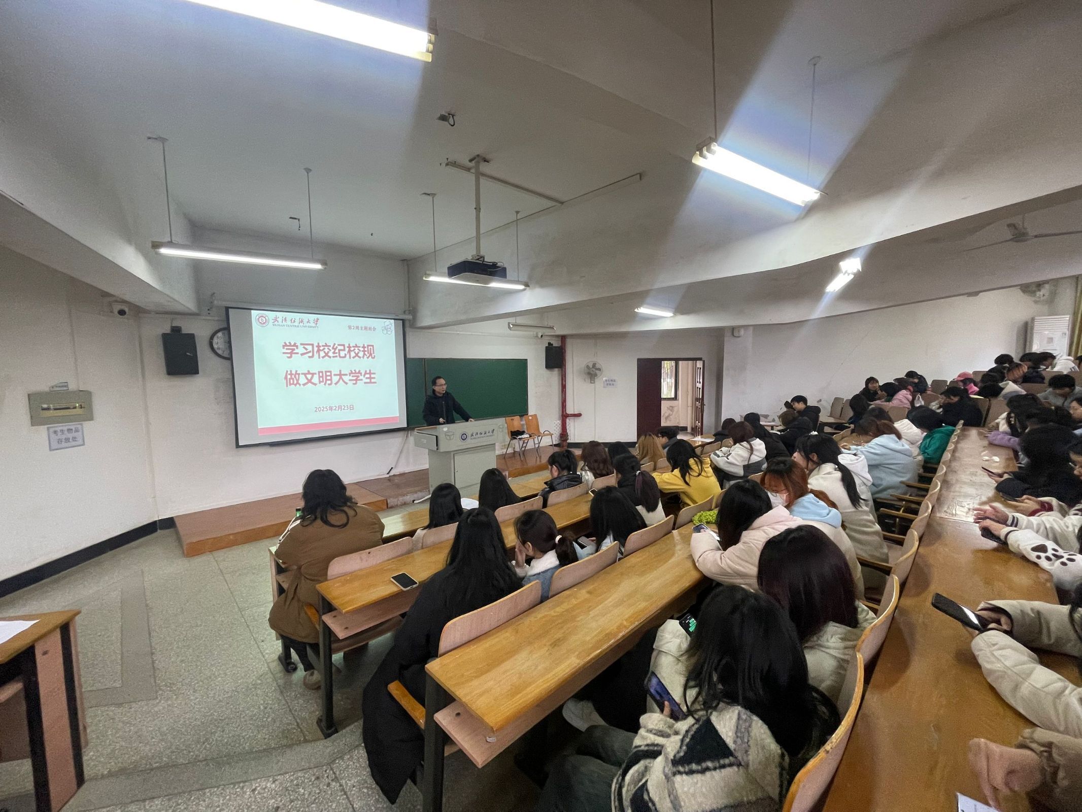 班会上,班主任领学了《武汉纺织大学本科生考勤及请假管理办法》《武汉纺织大学学生违纪处分办法》等内容,强调了修订后的日常请假注意事项和遵守校规校纪的重要性。鼓励大家制定好个人目标,做好学习和生活规划,时刻遵守行为准则,积极参加学院和学校组织的各项活动,以饱满热情开启崭新学期。