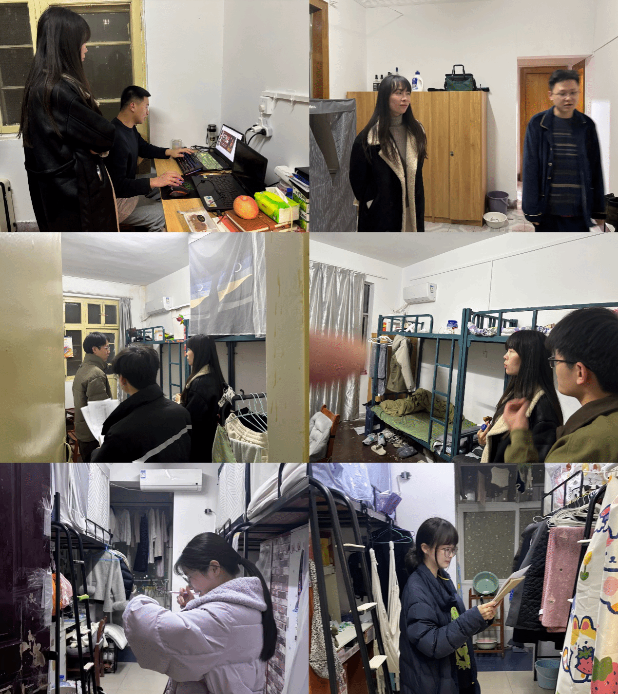 当晚,在陈畅的带领下,研究生会成员开展了新学期宿舍大检查工作。本次宿舍走访的主要目的在于,关注学生的生活适应情况、学习状况和成长困惑,并重点排查了宿舍安全隐患,对宿舍卫生状况进行了全面检查。
